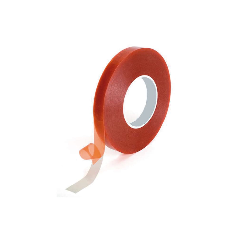 Cinta adhesiva transparente de doble cara con base acrílica, alta resistencia (53 N/25 mm) y fijación rápida. Ideal para molduras y anagramas, válida para uso interior y exterior.