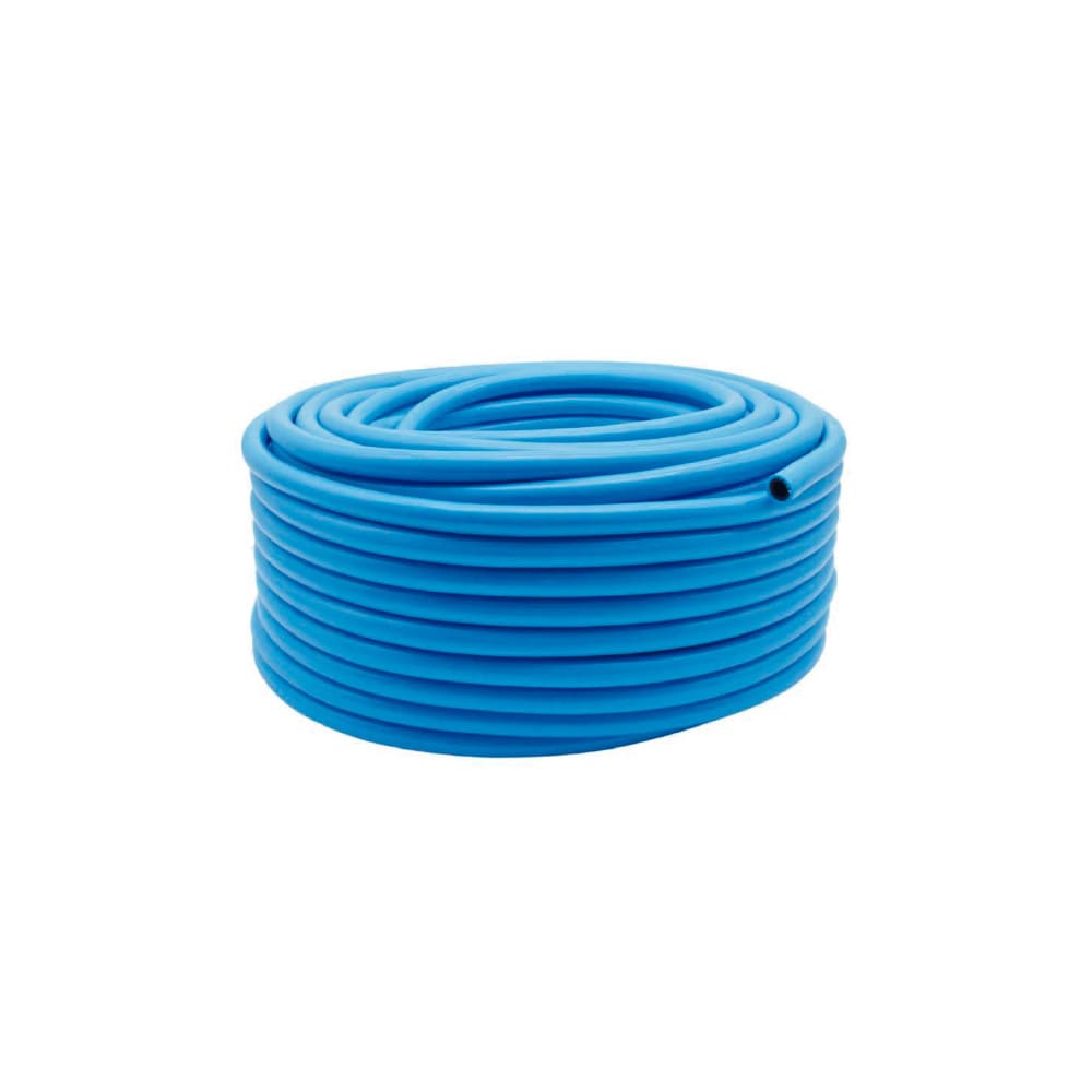 Manguera neumática reforzada de termocaucho con refuerzo interior de fibra de vidrio antirrotura. Alta elasticidad y gran resistencia al rozamiento y la abrasión. Diámetros: 8 mm (interior) y 15 mm (exterior). Rango de trabajo: -15 °C a 60 °C.