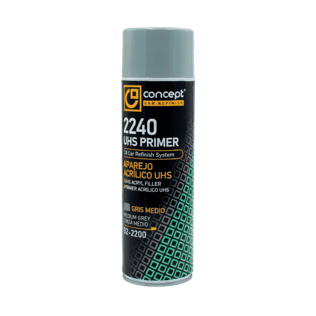 Aparejo acrílico UHS 1K con gran adherencia en metal y plástico. Ofrece alto poder de sellado, propiedades anticorrosivas y secado rápido. Fácil de lijar y repintar. Aerosol 500 ml