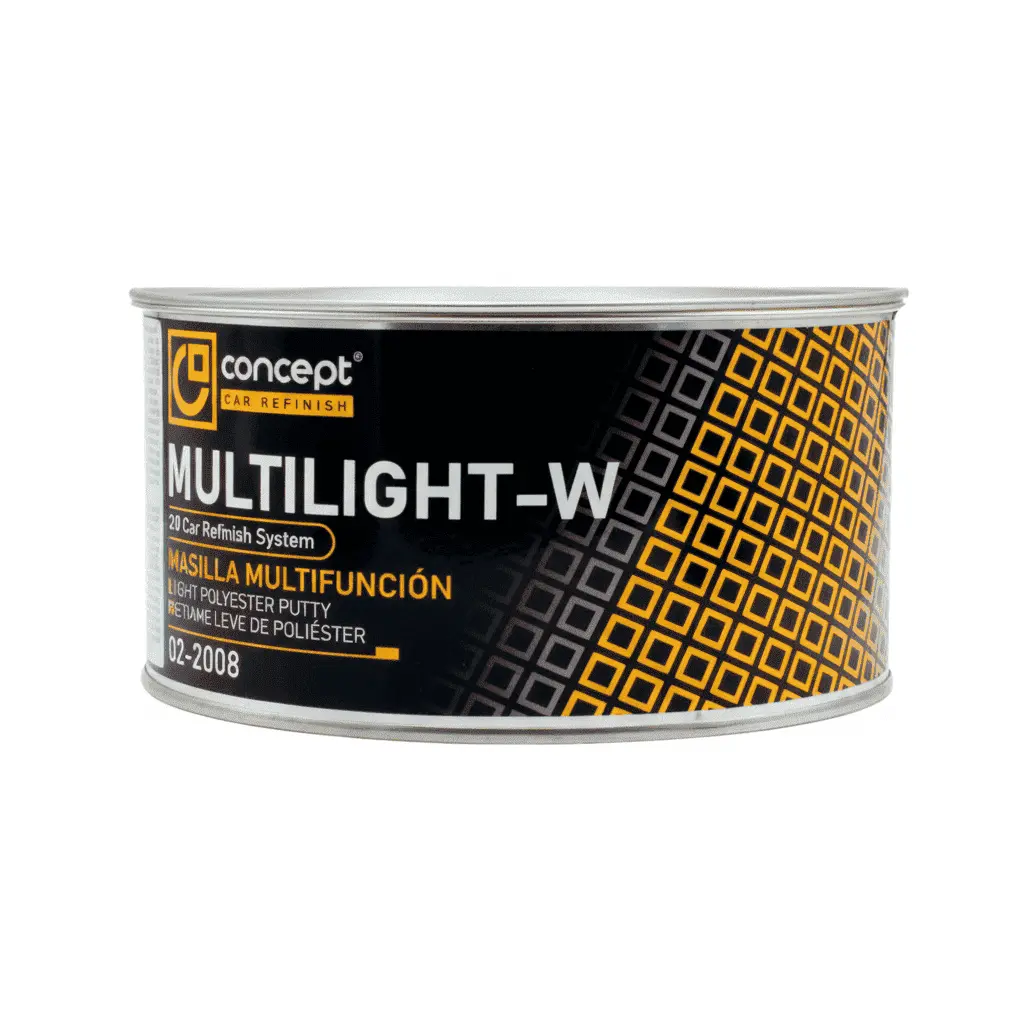 Masilla de poliéster extra ligera con excelente adherencia y acabado extra fino. Fácil de aplicar y lijar, apta para acero, aluminio y laminados de poliéster o vidrio.