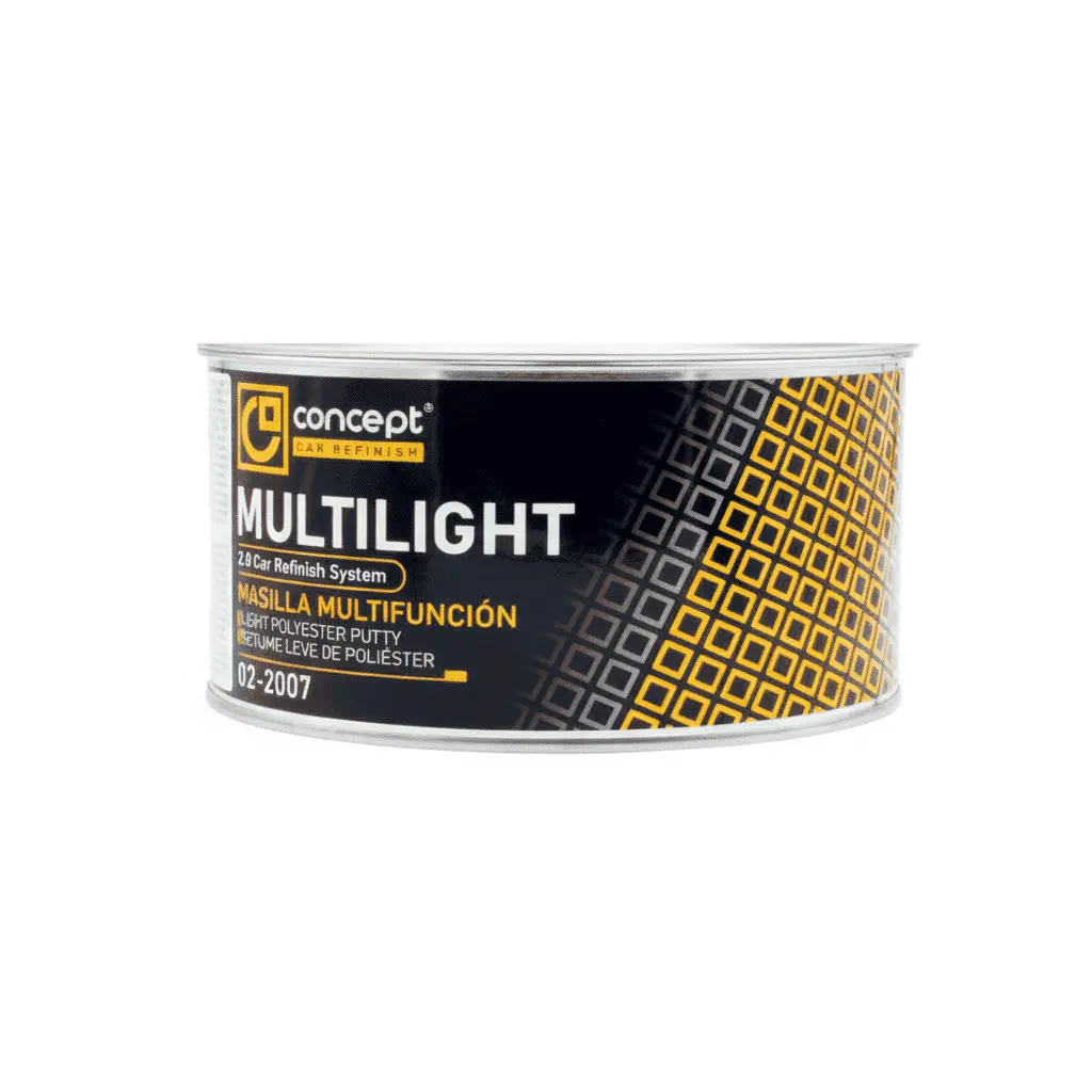 Masilla de poliéster extra ligera con excelente adherencia y acabado extra fino. De fácil aplicación y lijado, ideal para acero, aluminio y laminados de poliéster o vidrio.