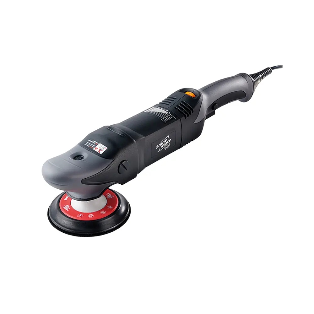 Pulidora profesional para el pulido de carrocerías con sistema de doble engranaje DOUBLE TORQUE™, regulador de 6 velocidades y arranque progresivo antisalpicaduras. Incluye estabilizador de velocidad constante, cabezal ligero de composite y cable de 5 m.